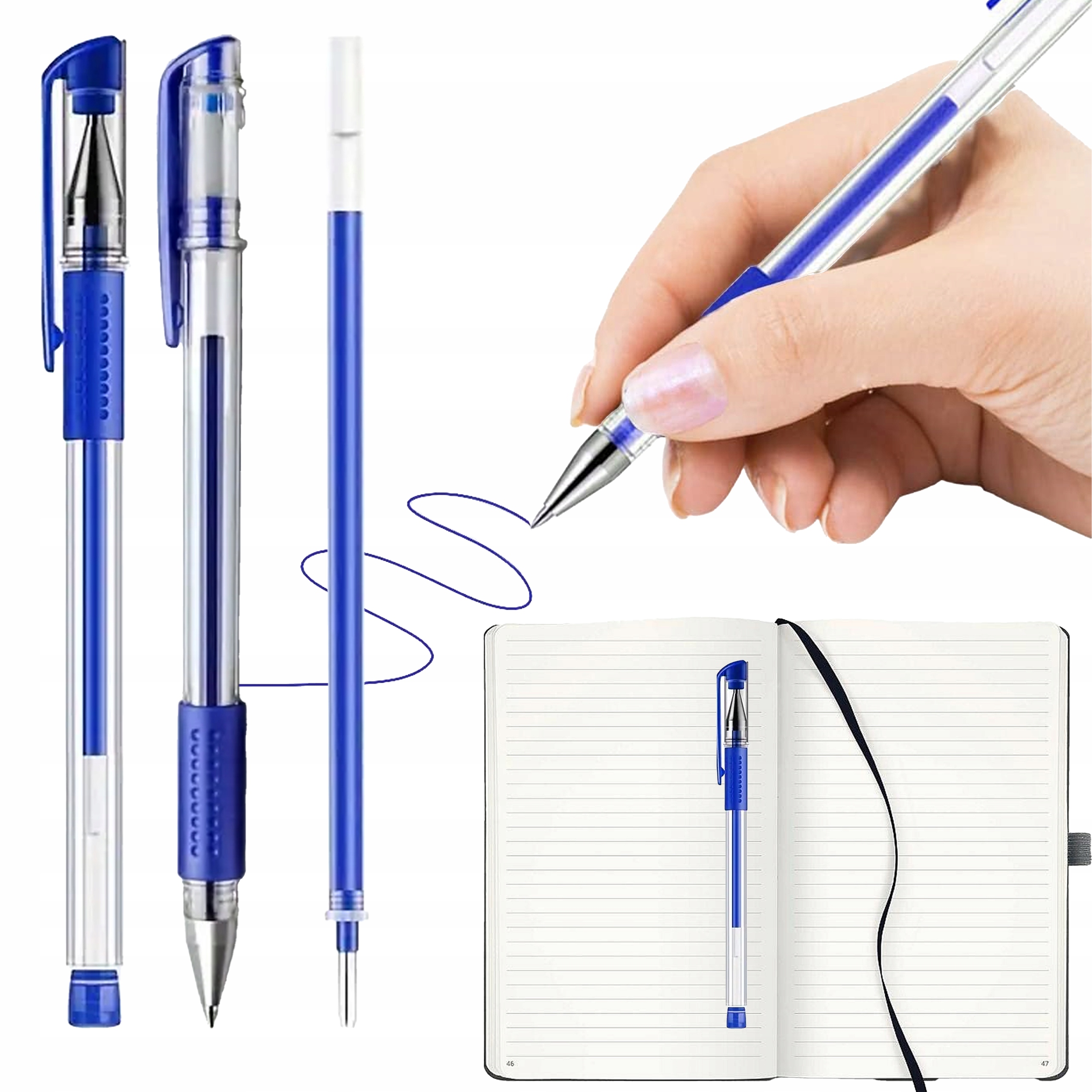 ✔️ Kolor długopisu – transparentny/niebieski,