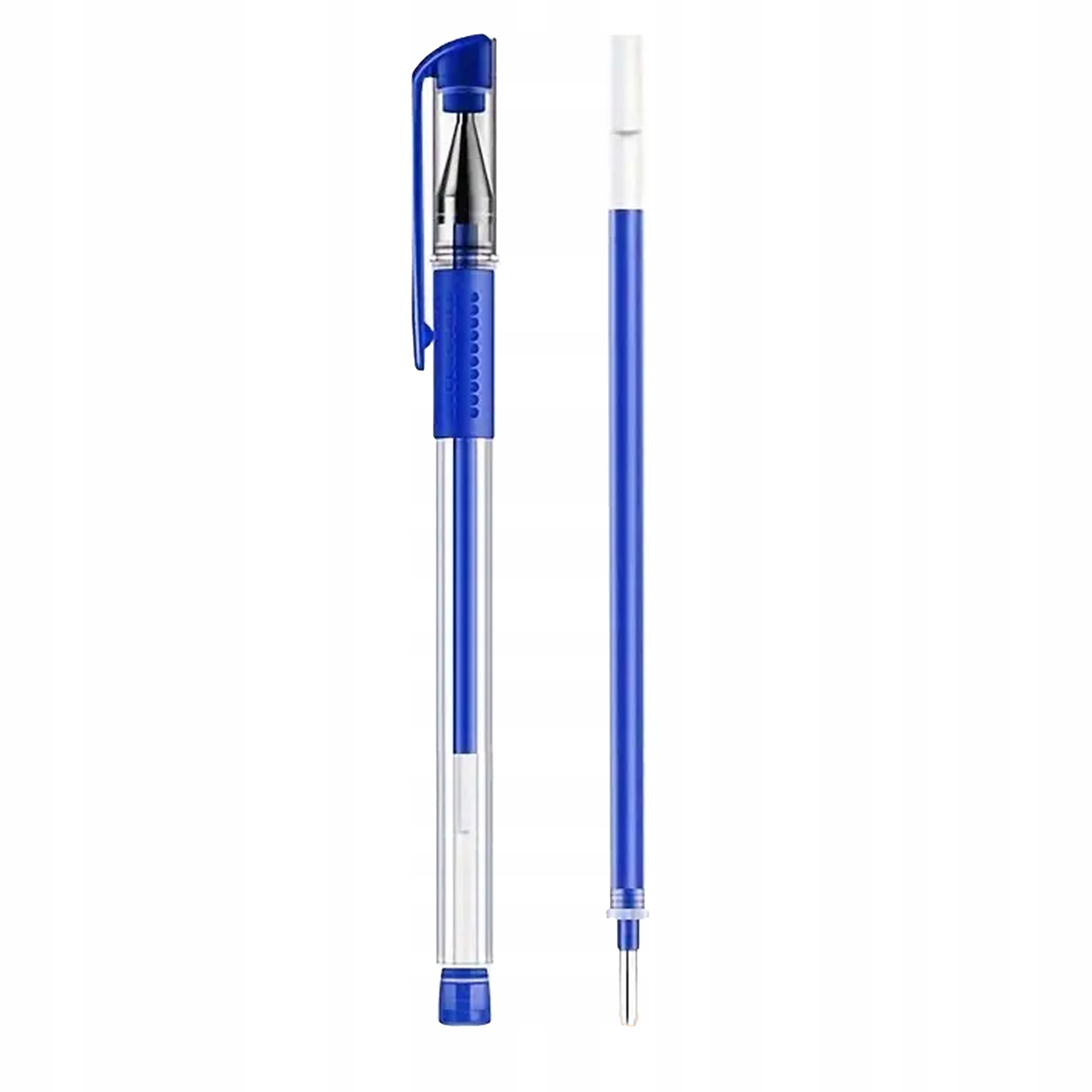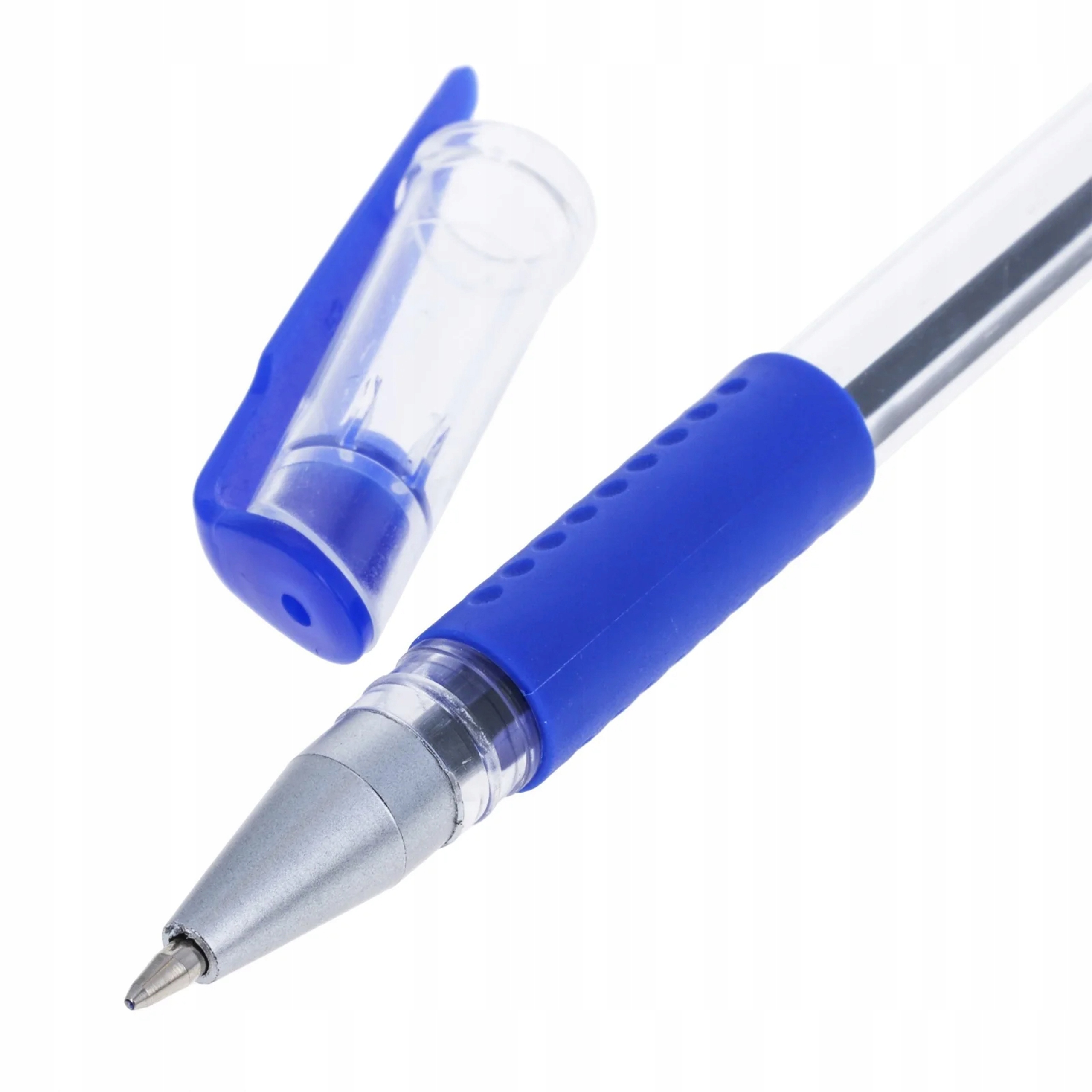 DŁUGOPIS ŻELOWY 0,5 MM Z NASADKĄ, ERGONOMICZNY, NIEBIESKI, PRZEZROCZYSTY
