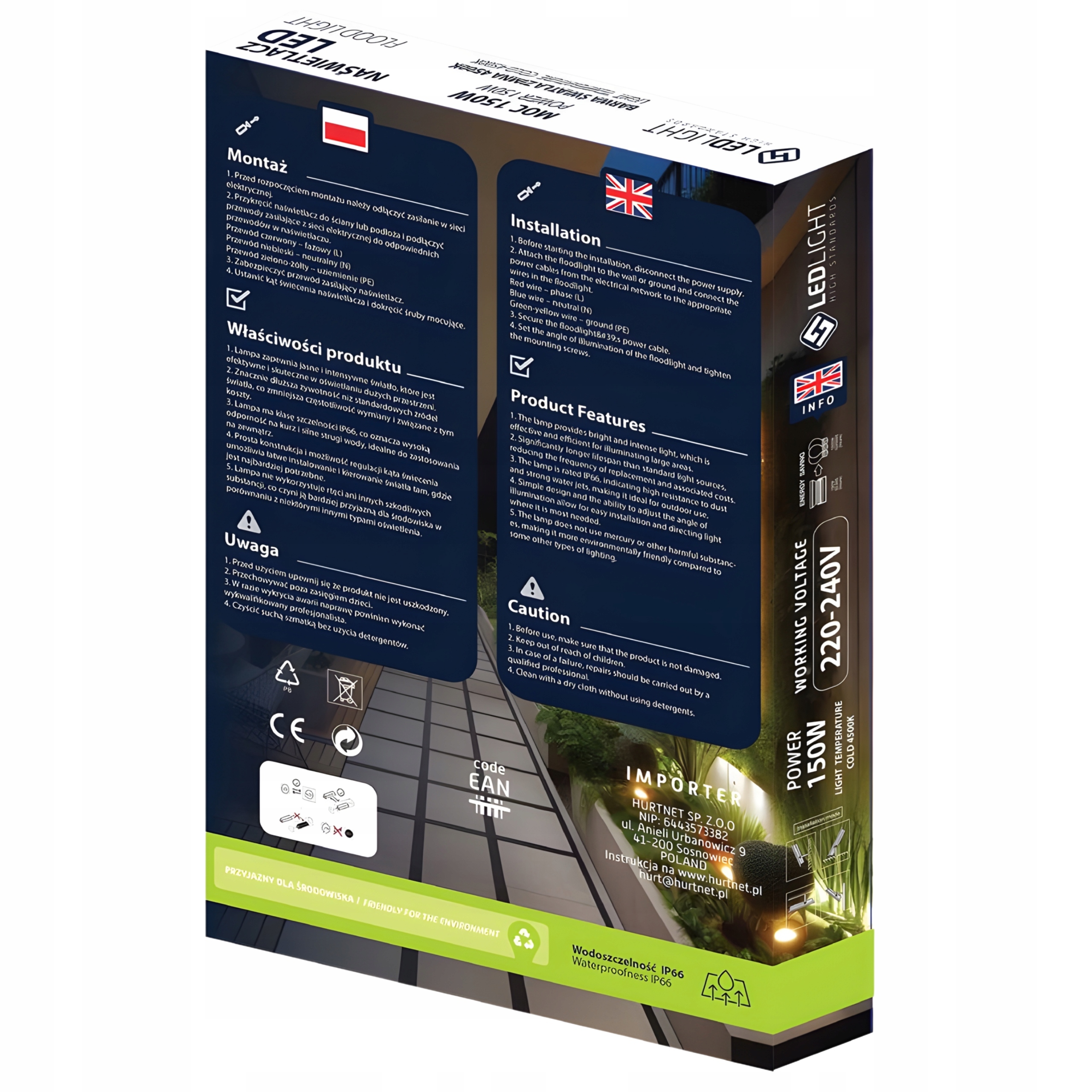 - Klasa szczelności: IP66