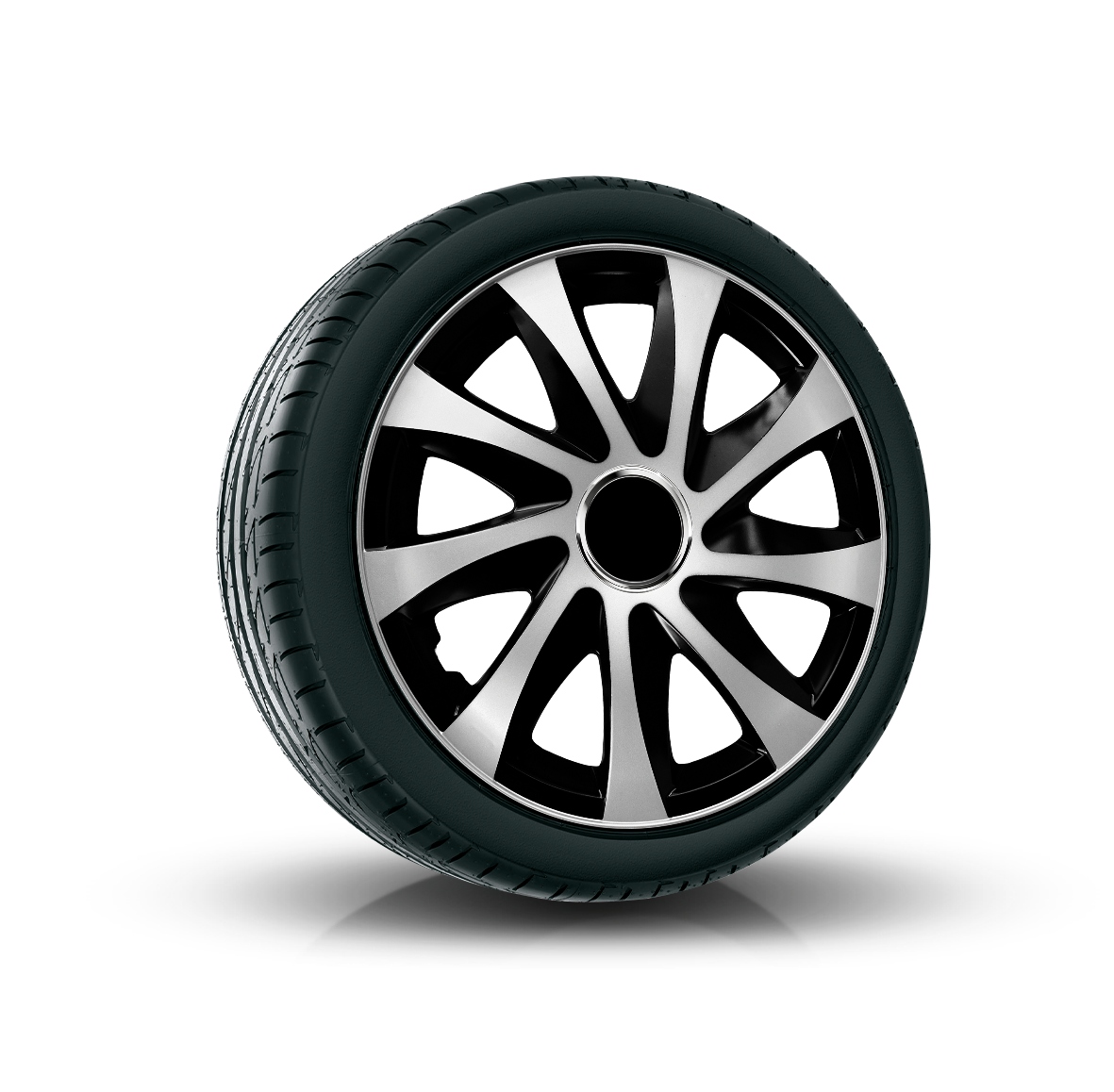 Kołpaki samochodowe 14″DRIFT srebrno-czarne 4 szt komplet uniwersalne