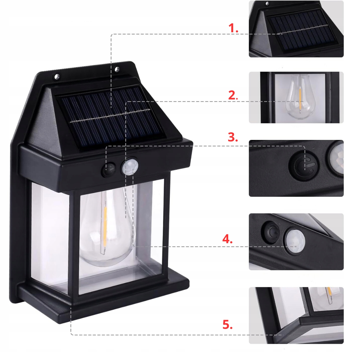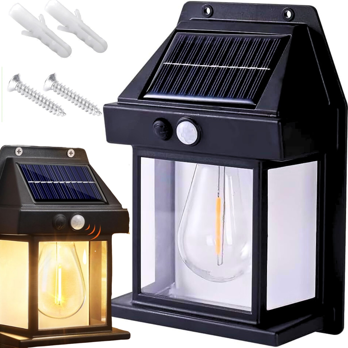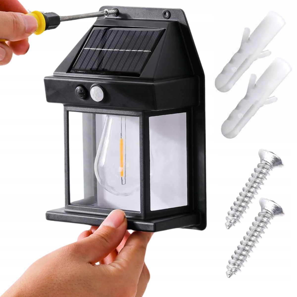LAMPA SOLARNA KINKIET LATARNIA ŻARÓWKA LED ELEWACYJNA OGRODOWA ZEWNĘTRZNA