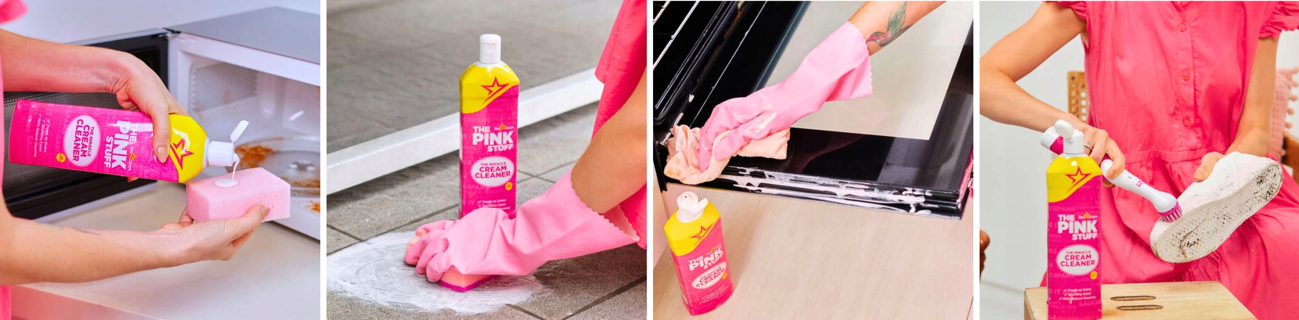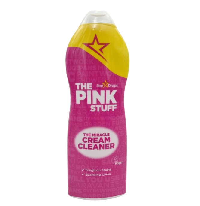 The Pink Stuff – pasta czyszcząca, której specjalnie opracowana formuła skutecznie i bezpiecznie czyści wszystkie powierzchnie w domu: z metalu, srebra, miedzi, złota, umywalki, wanny, armatura, felgi samochodowe, wnętrze piekarnika, kuchenki gazowe, meble laminowane, płytki, meble ogrodowe z PCV, okna, rolety, grille, łodzie.