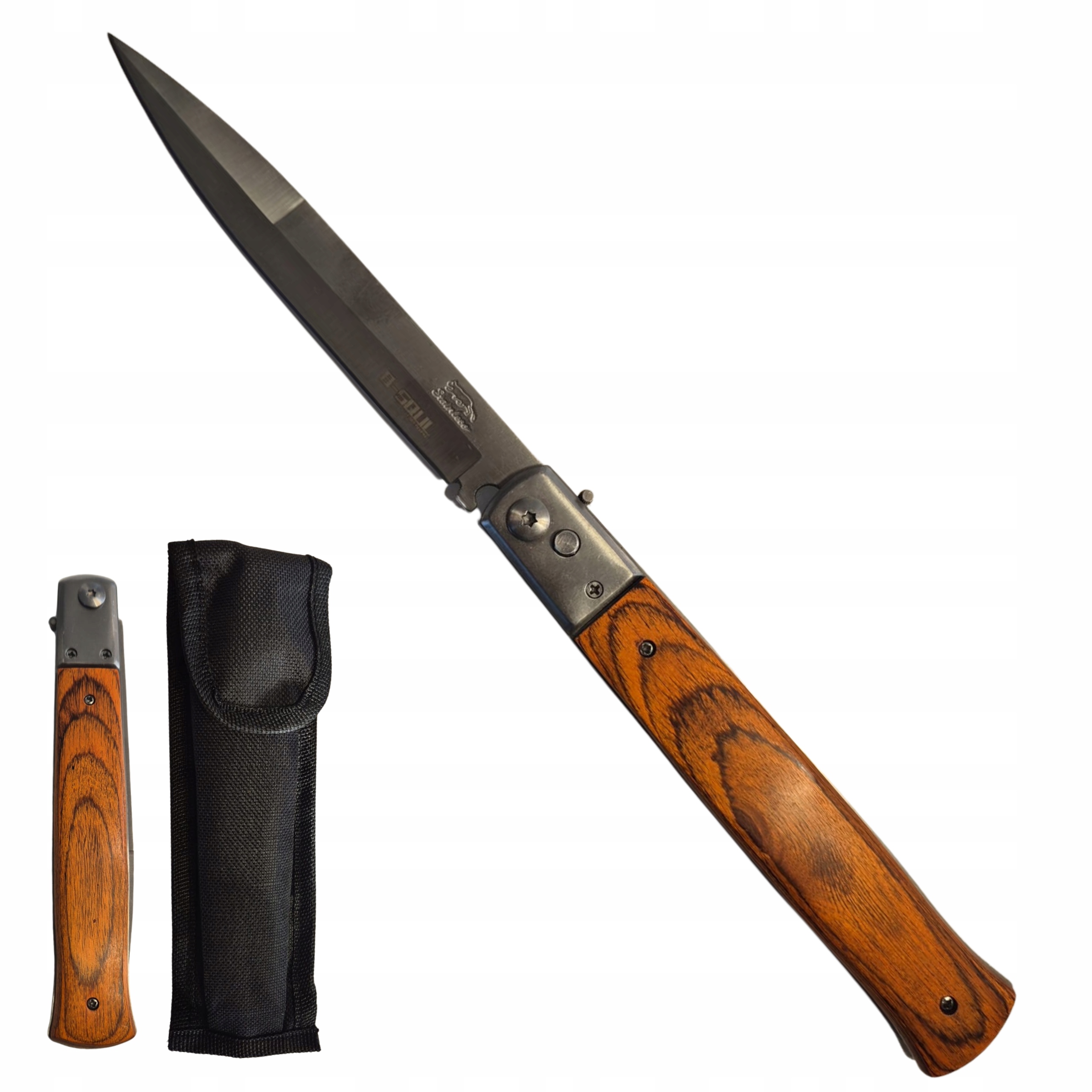 N AJDŁUŻSZY DOSTĘPNY NÓŻ SPRĘŻYNOWY B-SQUL MYŚLIWSKI SURVIWALOWY WOJSKOWY SCYZORYK + POKROWIEC