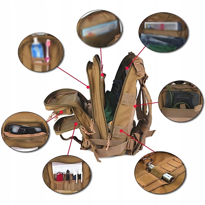 PLECAK TAKTYCZNY WOJSKOWY 4w1 30L SURVIVAL TURYSTYCZNY MOCNY WODOODPORNY MILITARNY Z SYSTEMEM MOLLE