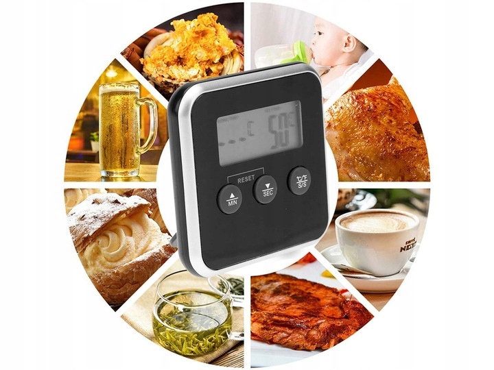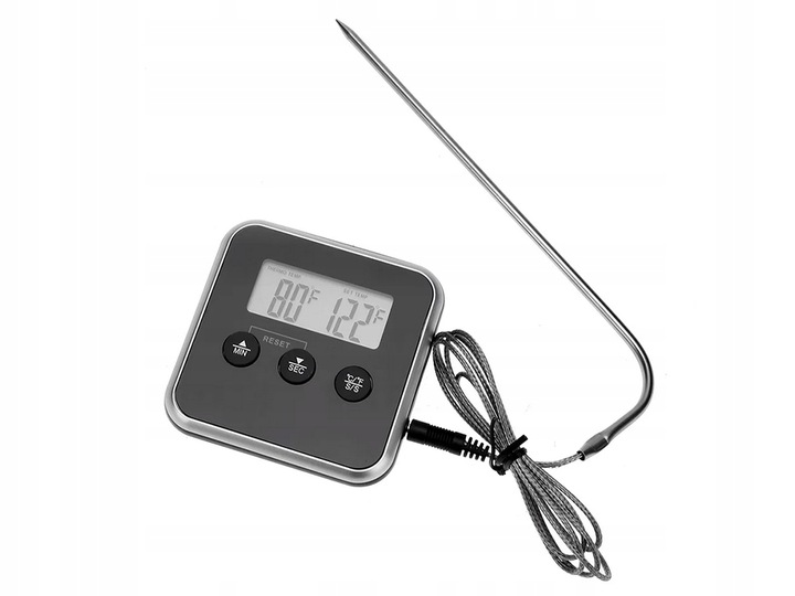 CYFROWY TERMOMETR Z TERMO SONDĄ DO PIECZENIA MIĘSA WĘDZARNI TIMER ALARM LCD