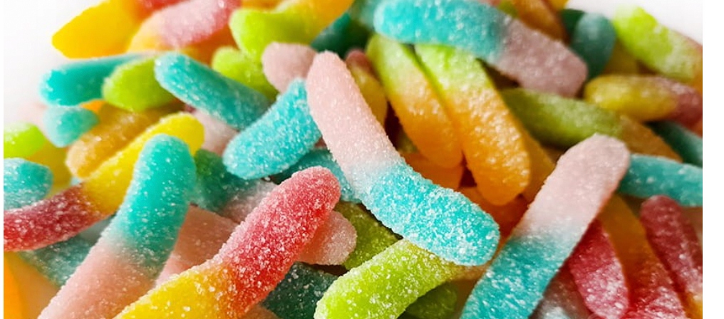 ✅Składniki: cukier; syrop glukozowy; Żelatyna; zakwaszacze: kwas cytrynowy, kwas mlekowy, kwas jabłkowy; skrobia modyfikowana; substancja utrzymująca wilgoć: sorbitol; regulatory kwasowości: cytryniany wapnia, jabłczan sodu; aromaty; Barwnik: prawdziwy karmin, kurkumina, błękit brylantowy FCF.