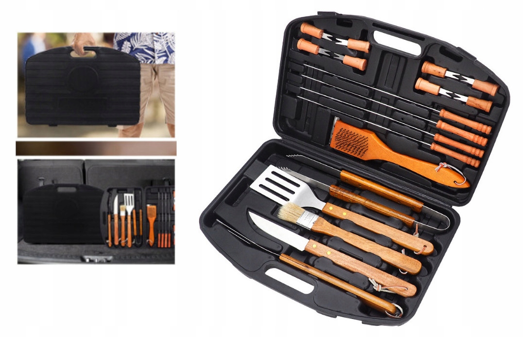 ZESTAW PRZYBORÓW DO GRILLA Z DREWNIANĄ RĄCZKĄ FULL ZESTAW W WALIZCE TANIO